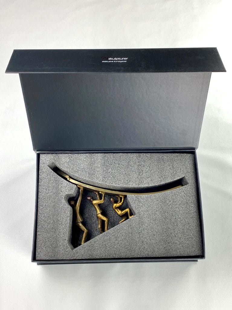 Skulpturen leveres i en flott gaveeske med beskrivelse av kunstneren og kunstverket.