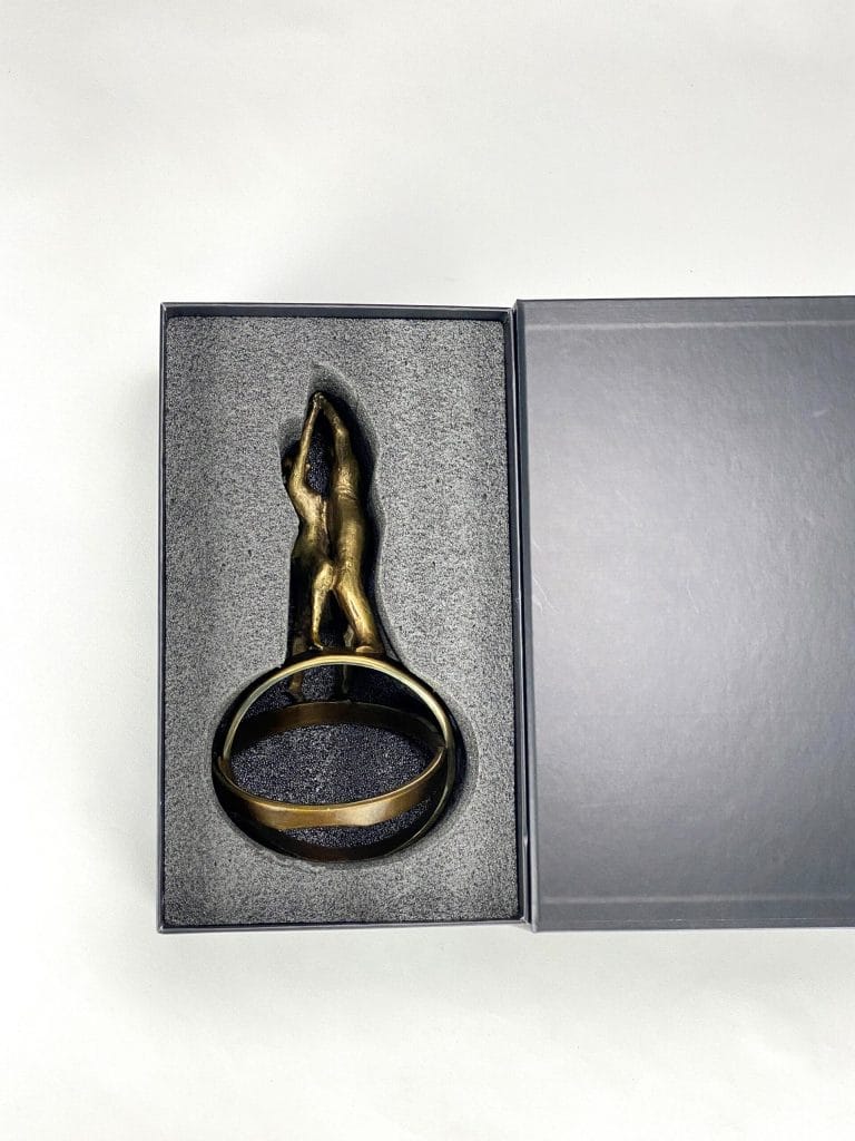 Skulpturen leveres i en flott gaveeske med beskrivelse av kunstneren og kunstverket.