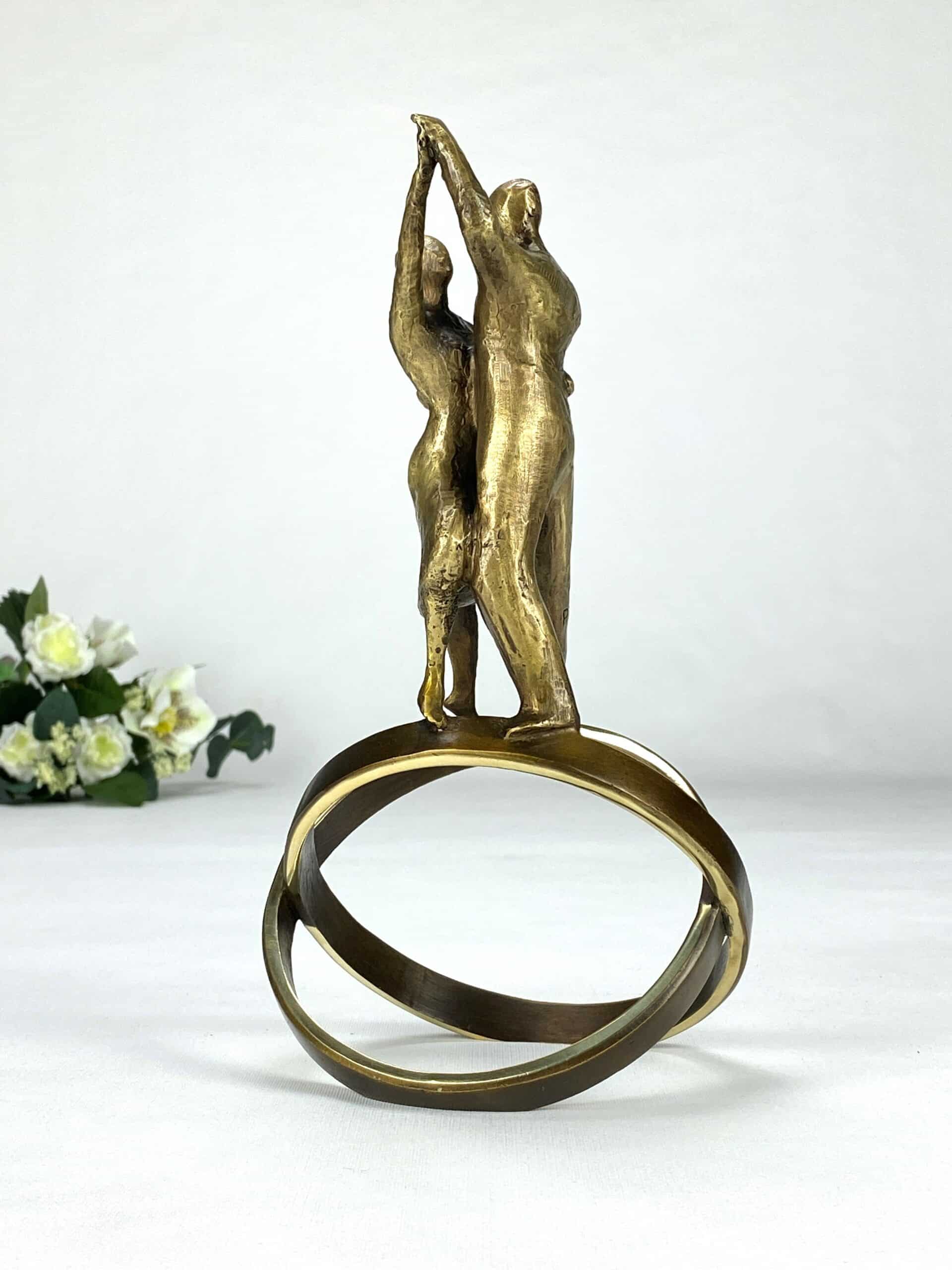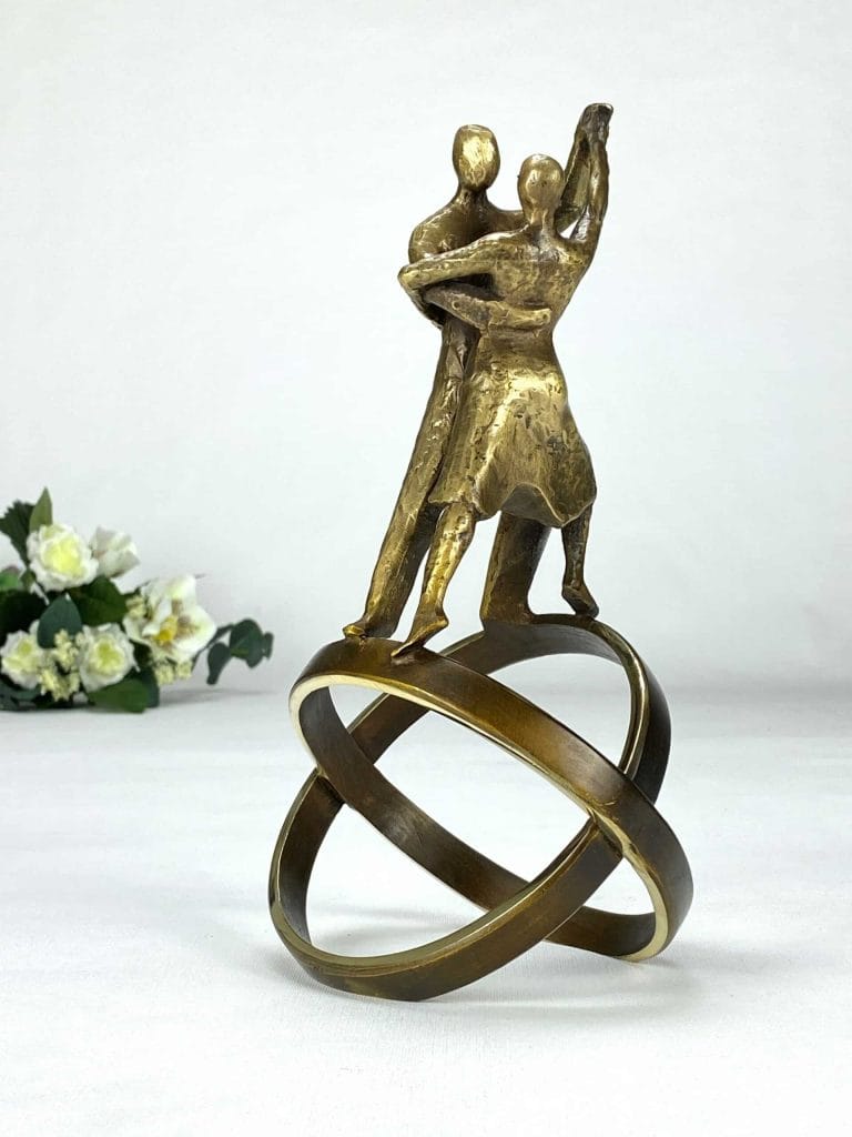 En elegant og sanselig bronseskulptur som feirer kjærligheten, samspillet og livets bevegelser. Livets Dans forener tangoens lidenskap med symbolikken i de kryssende ringene – et bilde på to sjeler forent i et felles liv, fylt med balanse, nærvær og uforglemmelige øyeblikk.