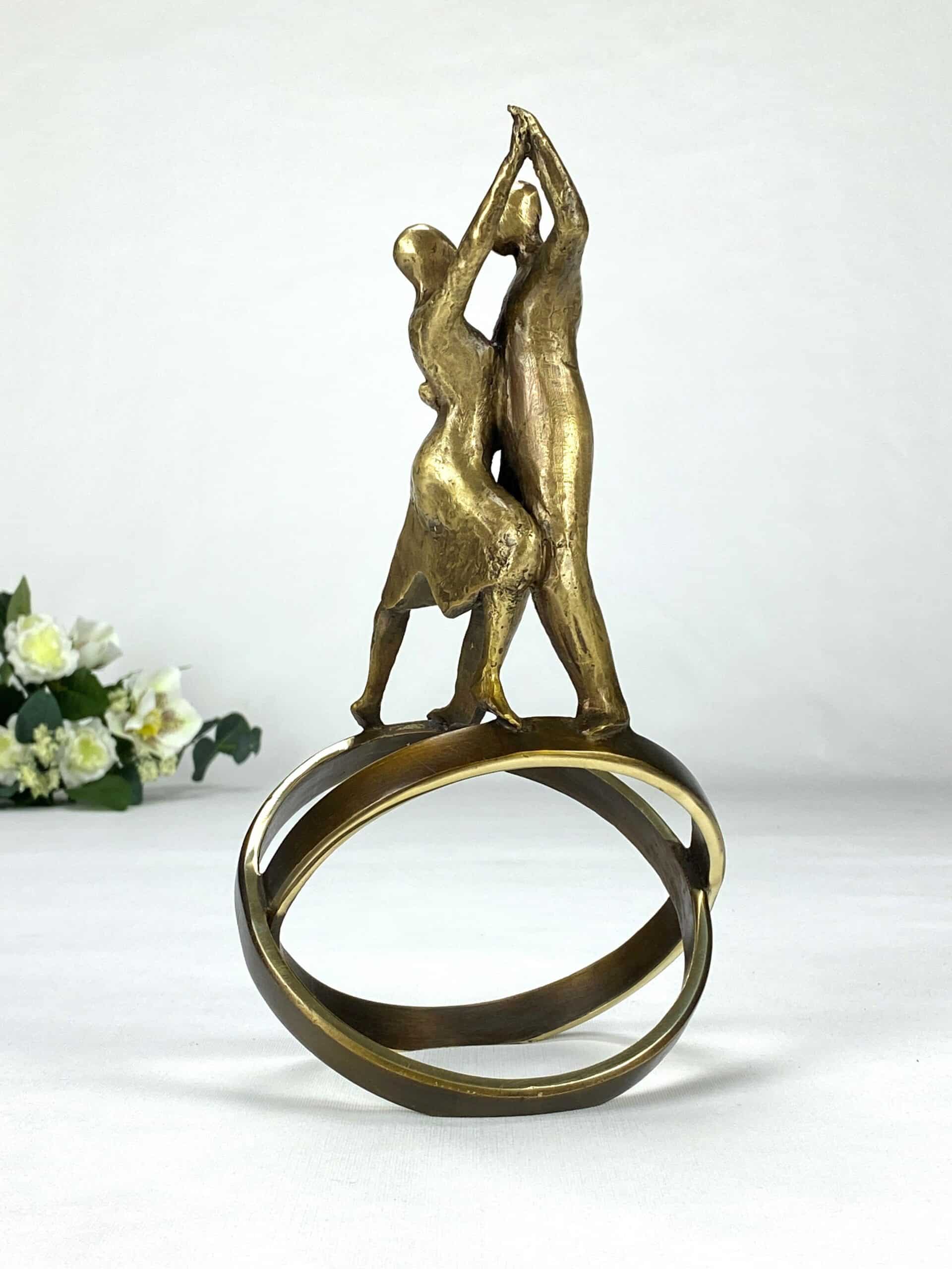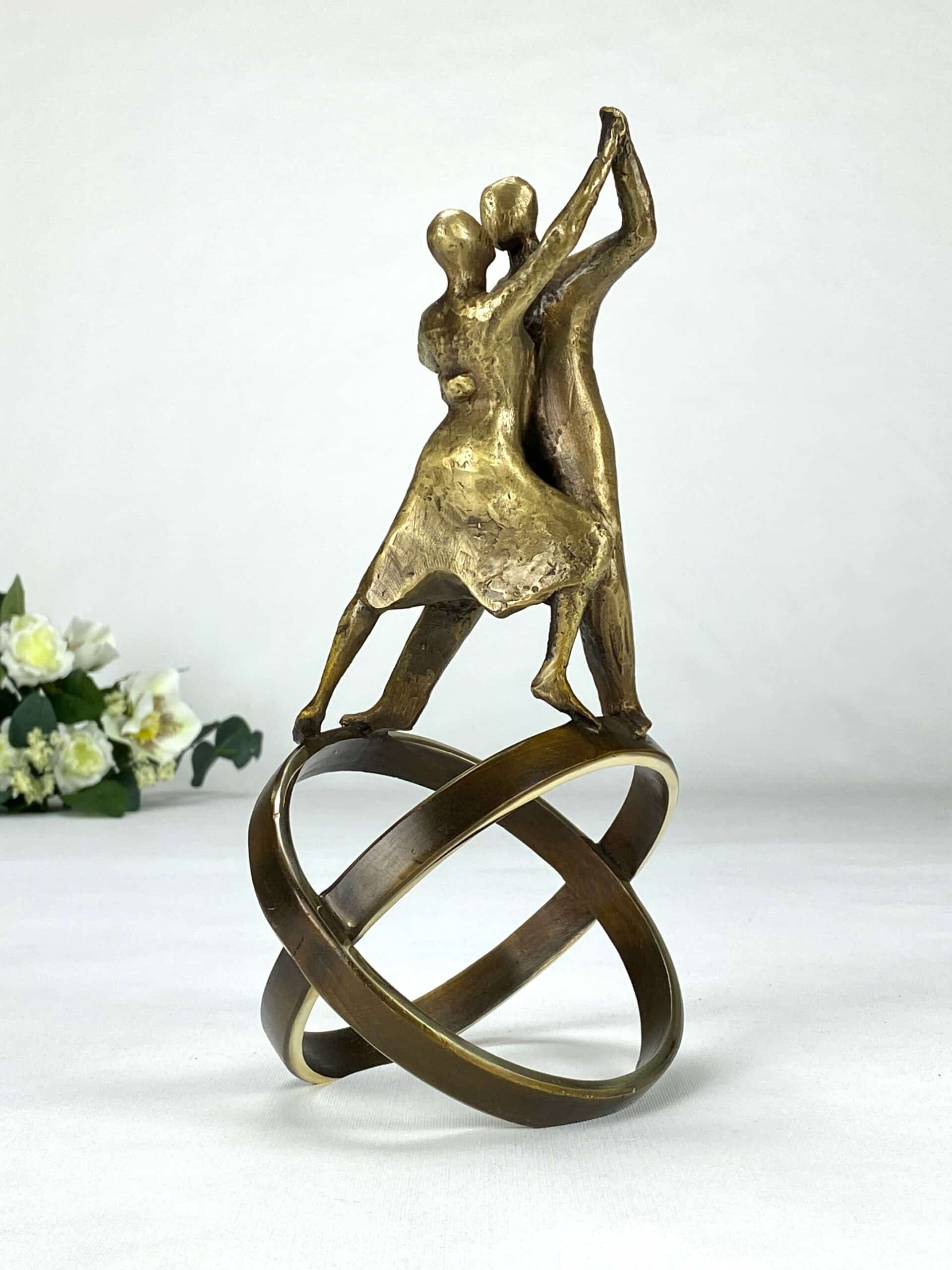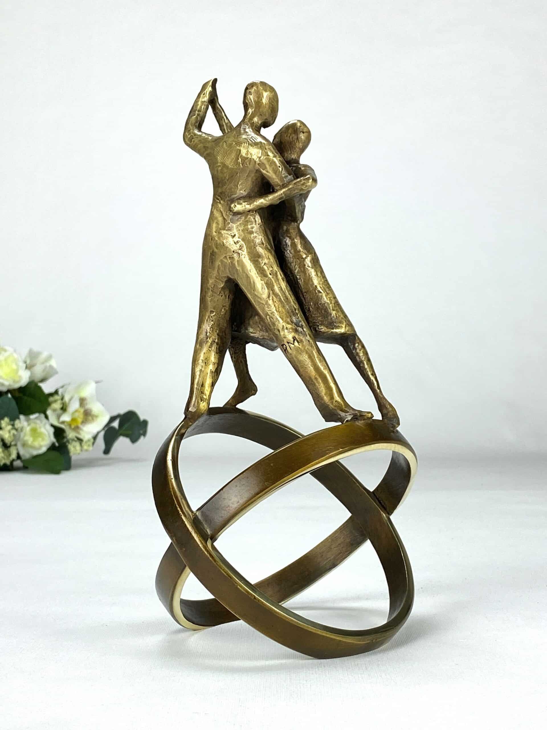 En svært vakker og elegant bronseskulptur som hyller livet og kjærligheten. Skulpturen forener bevegelse, lidenskap og symbolikk i en enestående harmoni. Tangoen symboliserer intimitet, samarbeid og livets dynamiske rytme. De kryssende ringene representerer både jordkloden og foreningen av to sjeler, som i et ekteskap eller partnerskap. Livets Dans fanger det vakre samspillet mellom to mennesker som danser gjennom livet i en evig bevegelse av glede og kjærlighet. Den minner oss om at dansen i livet handler om å finne balansen vår og skape uforglemmelige øyeblikk sammen med dem vi elsker.