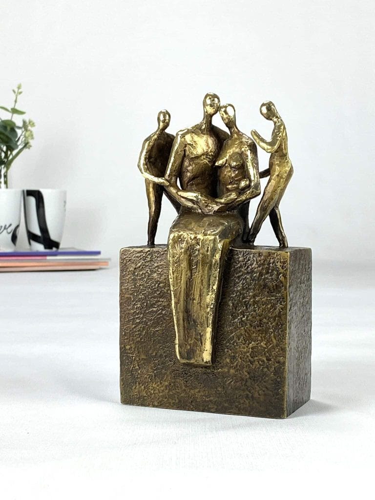 MIN FAMILIE MED 3 BARN – Bronseskulptur med familien i fokus