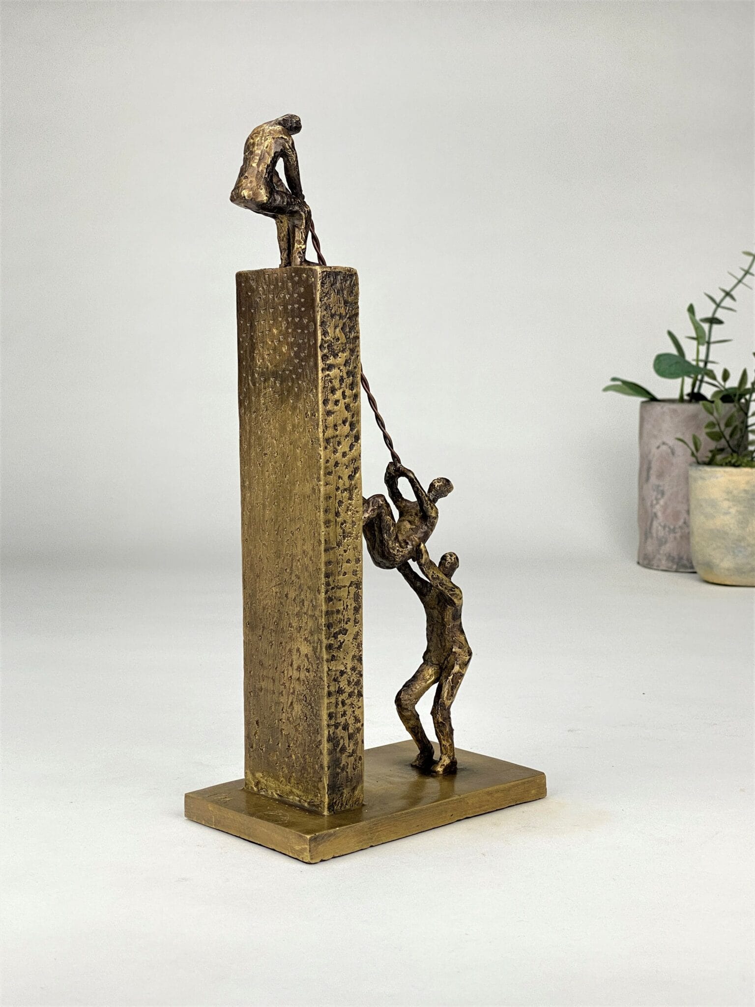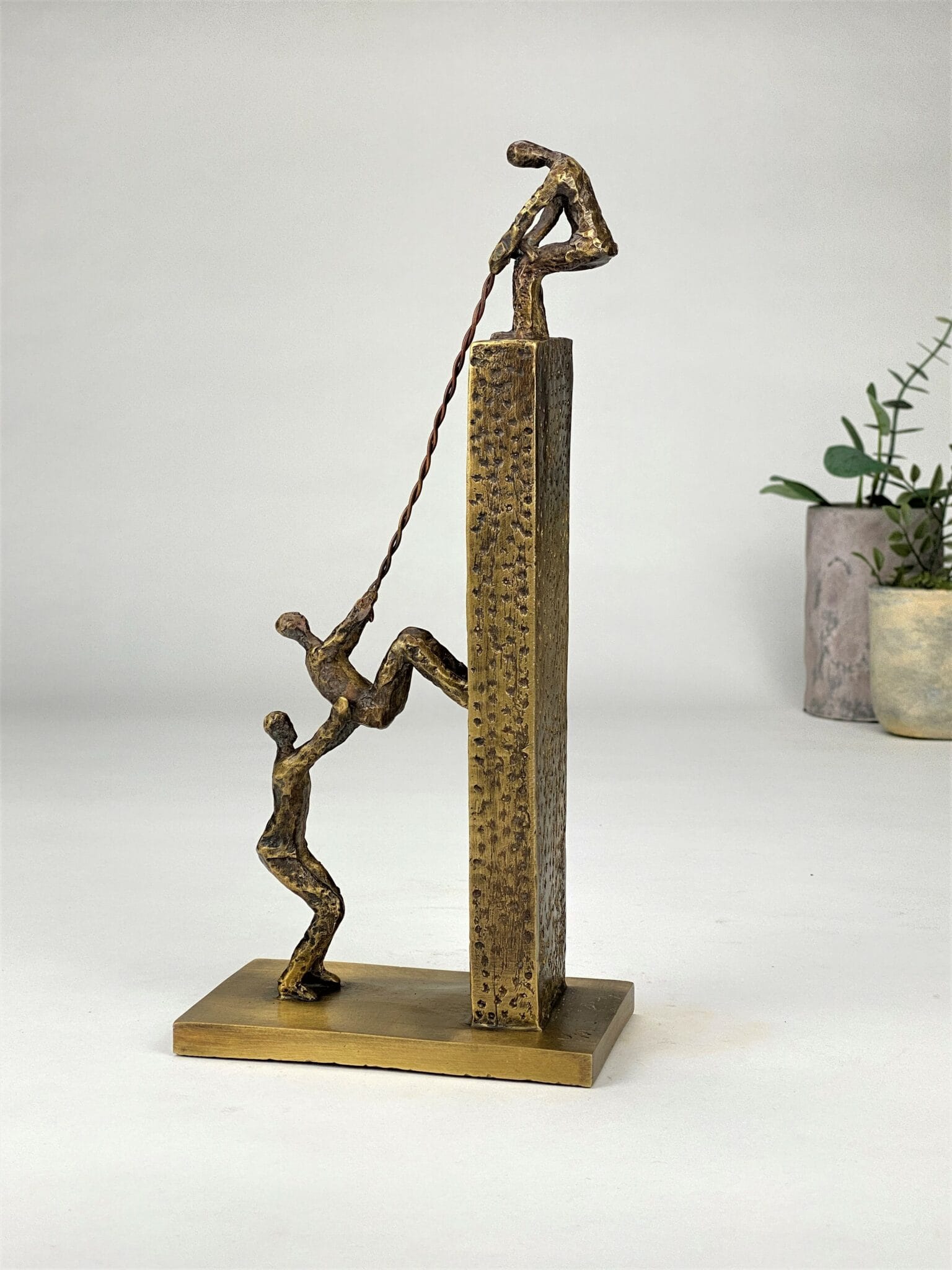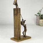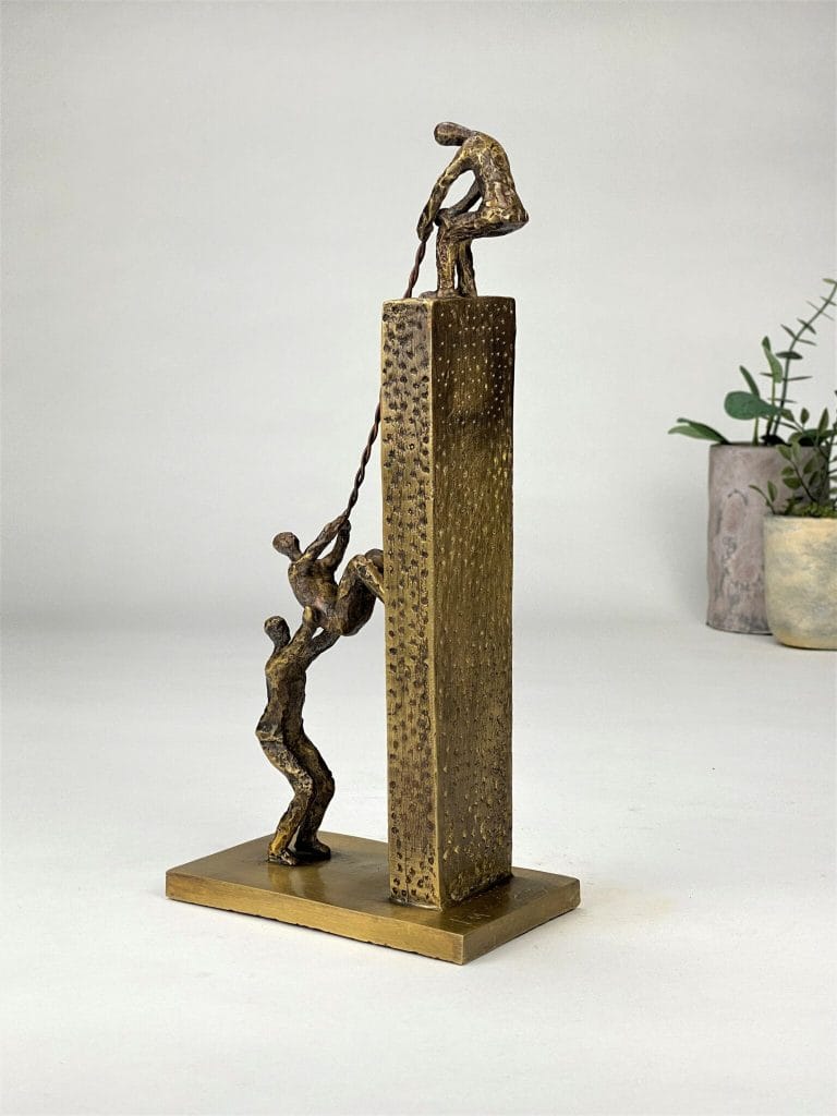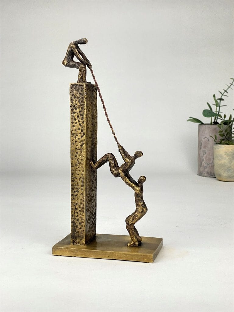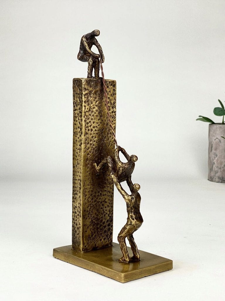 Next Level er en symbolsk og sterk bronseskulptur som hyller samarbeid, felles mål og evnen til å løfte hverandre. Et kunstverk med flere tolkningslag – perfekt som anerkjennelse av team, ledere eller enkeltpersoner som har skapt resultater ved å trekke på felles styrker.