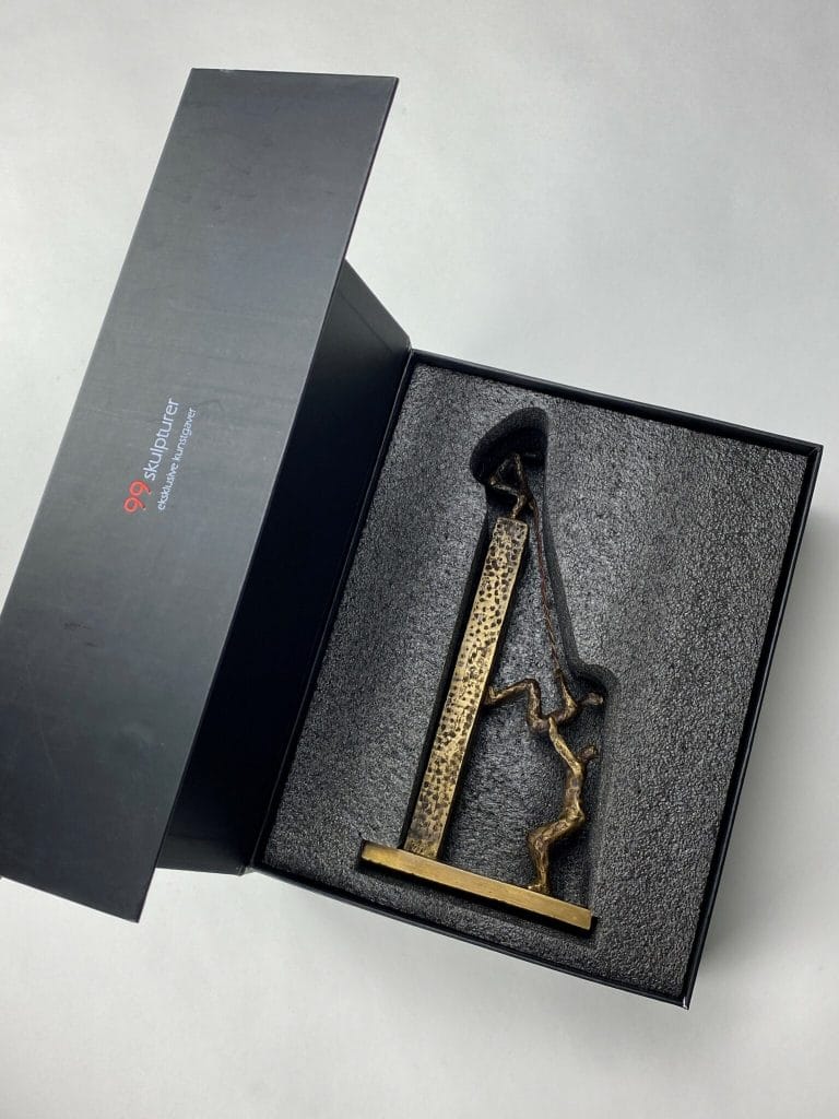 Skulpturen leveres i en flot gaveæske med vedlagt beskrivelse af kunstner samt kunstværk.