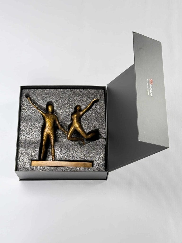 Skulpturen leveres i en vakker gaveeske med vedlagt beskrivelse av kunstner samt kunstverk.