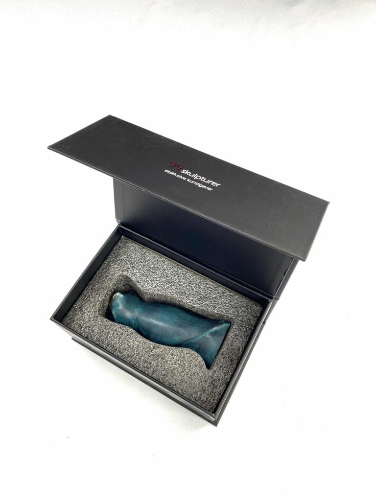 Skulpturen leveres i en flott gaveeske med vedlagt beskrivelse av kunstneren samt kunstverket.