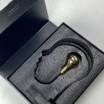 Skulpturen er støpt i forgylt sink, sort premiumstål og montert på en sokkel av klar plexiglass.